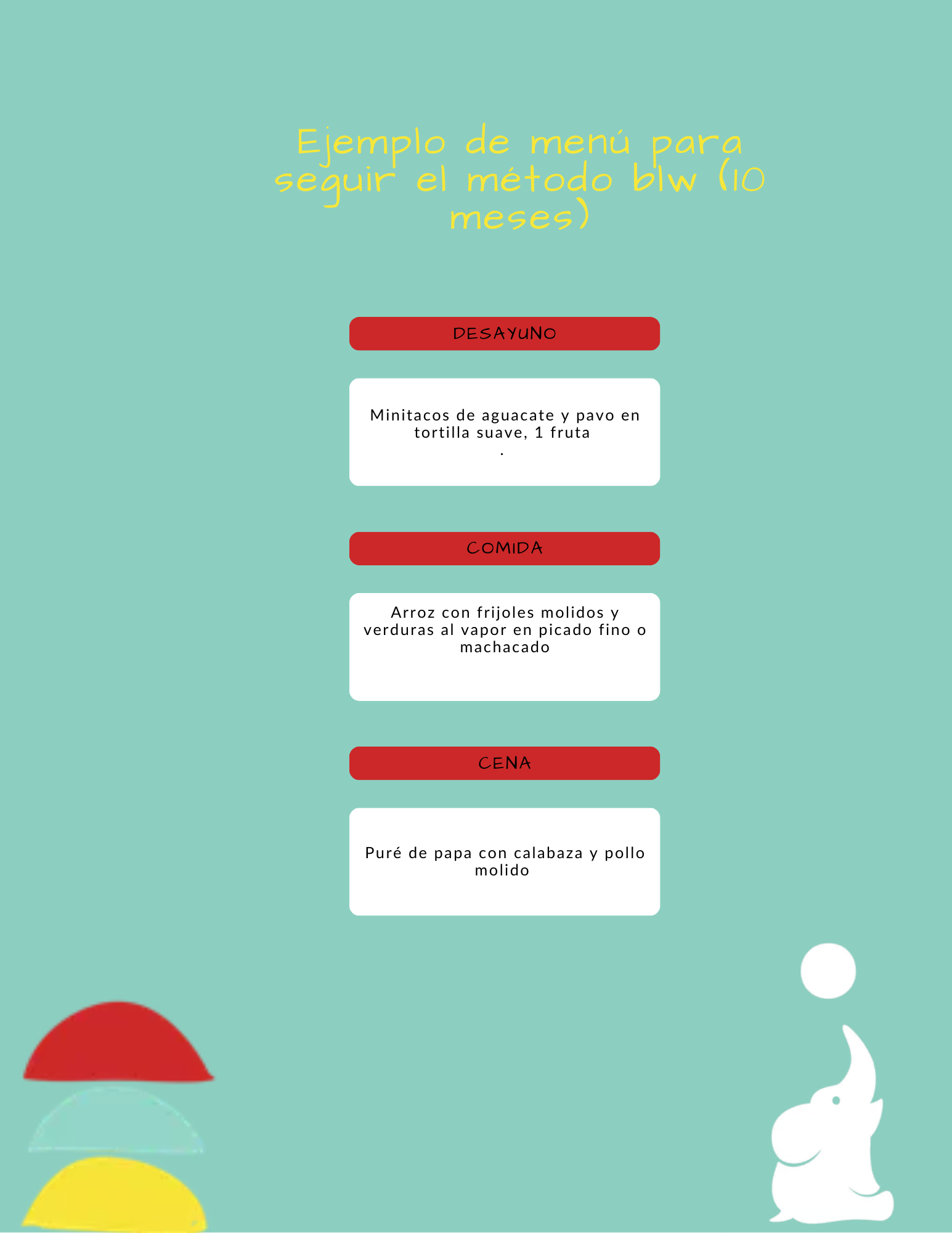 Ejemplo de menú para seguir el método blw (10 meses)