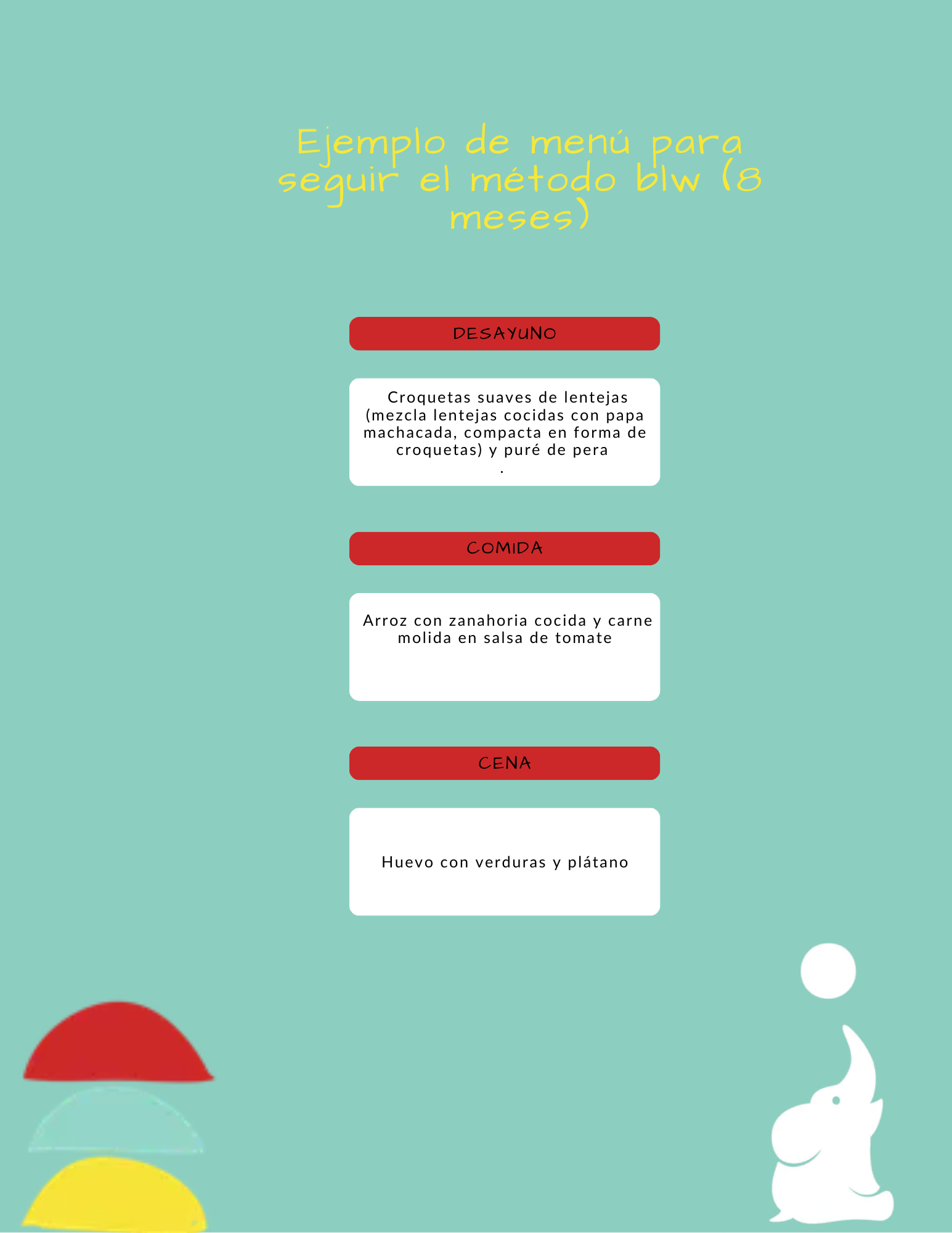 Ejemplo de menú para seguir el método blw (8 meses)