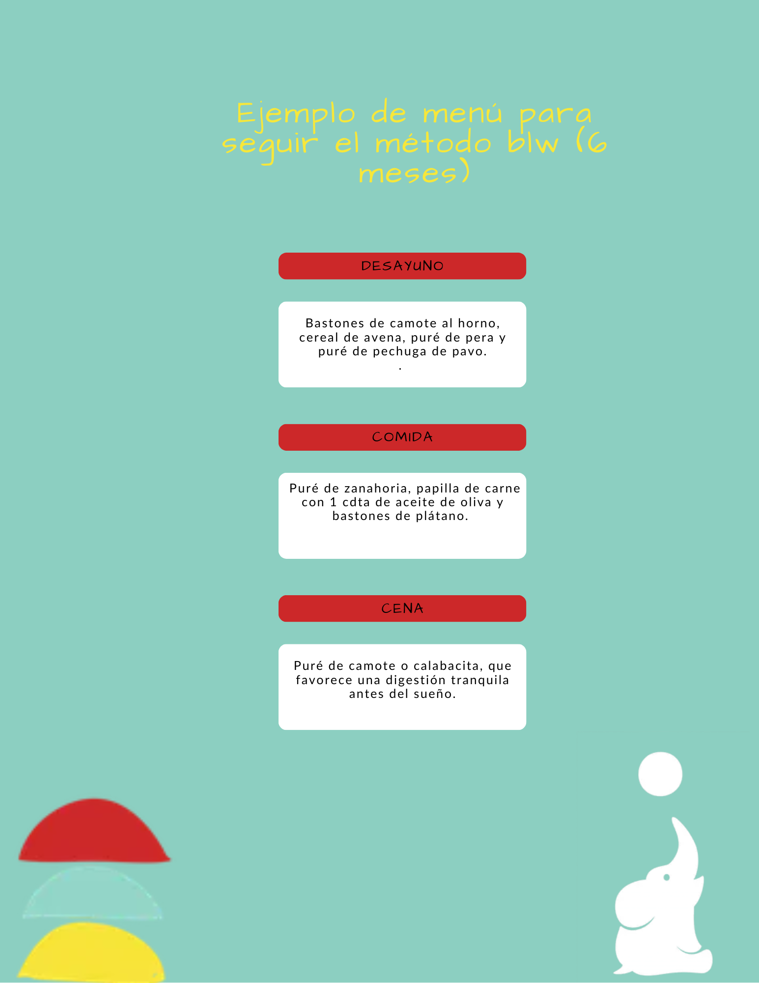 Ejemplo de menú para seguir el método BLW (6 meses)
